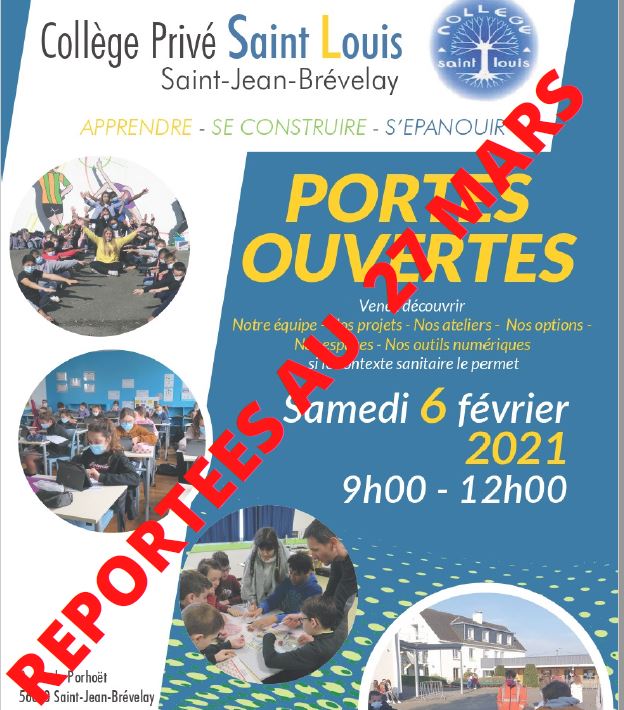 Prévues samedi 6 février 2021, les portes ouvertes du collège St Louis sont reportées au samedi 27 mars , en raison du contexte sanitaire actuel.